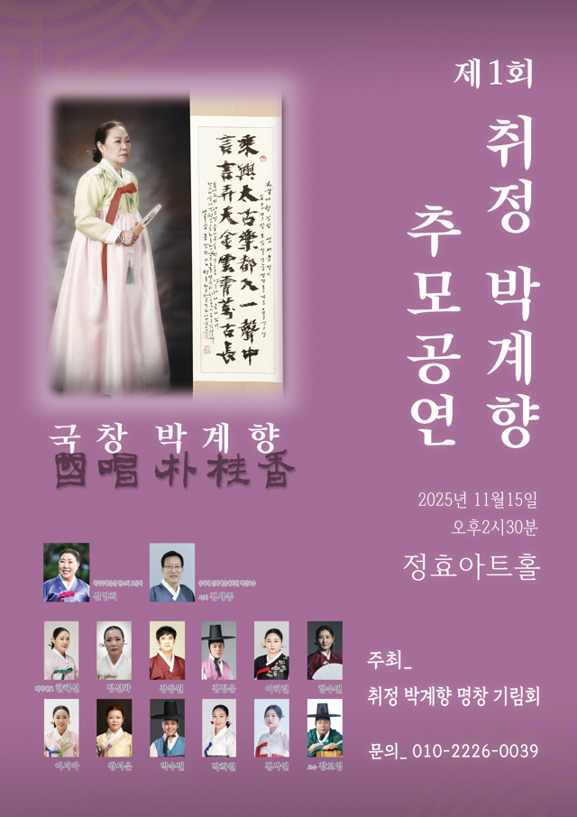 - 본 공연은 취정 박계향 명창 기림회의 주최로 진행됩니다.