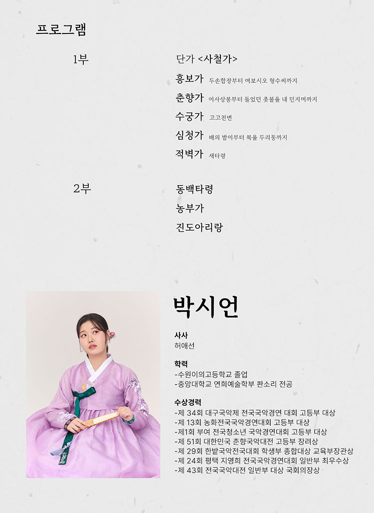 박시언 판소리 독창회 : 명성(銘聲), 소리를 새기다